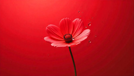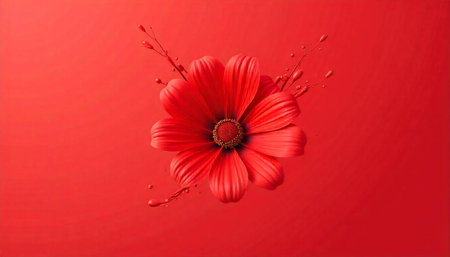 Amazing red flower with splashes of paint at isolated background. Idyllic artistic image, wallpaper. Beauty of nature concept backgrounds. Copy ad text space. Generative Ai illustration