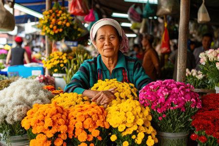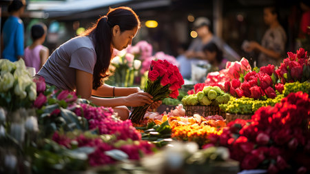Bustling market is filled with beautiful flowers that showcase vibrant colors and fresh blooms everywhere. Generative AI