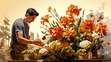 Male Florists minimalis characters working at Flower store , AI generated
