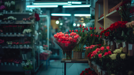 A bright flower shop is filled with stunning bouquets of roses, tulips, and daisies, inviting visitors to explore colorful arrangements.