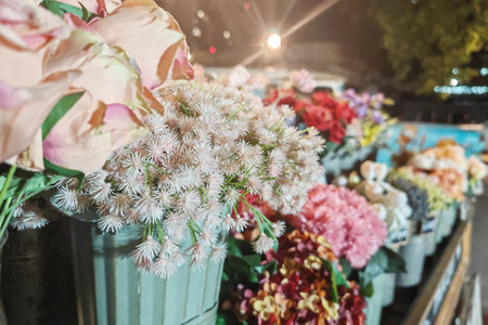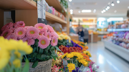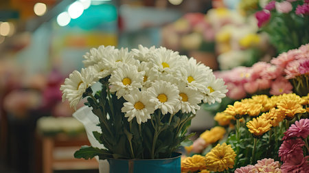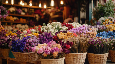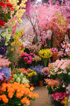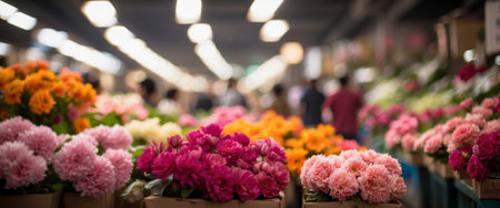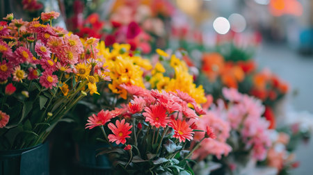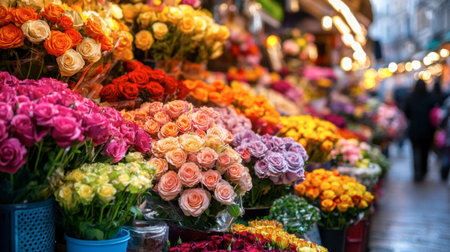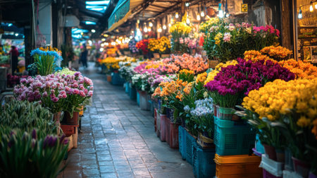 Bustling market is filled with beautiful flowers that showcase vibrant colors and fresh blooms everywhere. Generative AI