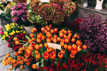 Colorful tulips in the flower shop in Rotterdam, Netherlands
