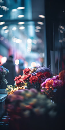 AI Generated. City flower market with blurred background, perfect for text placement and creative designs