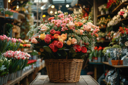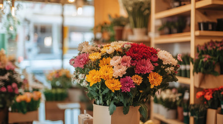 A stunning display of vibrant flowers fills a charming floral shop, showcasing exquisite arrangements that highlight the beauty of nature.
