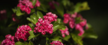 Beautiful pink flower bush, Soft focus on the bushes, Close-up, Copy-space