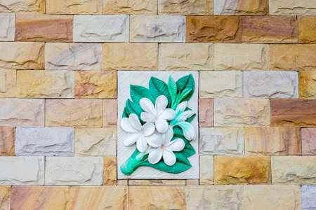 Photo for background material of colorful wall decorated with many artificial flowers