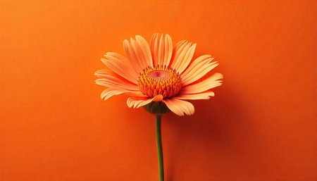 Gerbera Daisy Flower On Orange Background, Single Bloom