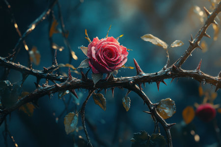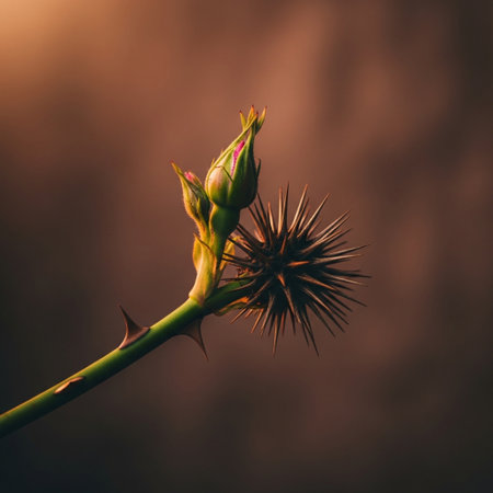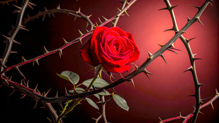 Artistic photo of rose thorns representing the intensity of love, sacrifice, and beauty with a soft gradient backdrop.