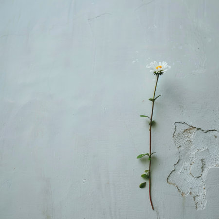 A simple and elegant arrangement featuring a single white flower against a textured wall. The soft colors and shadows create a calming and minimalist vibe.