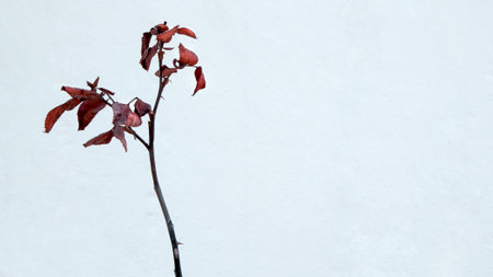 Dried leaves in front of a white background. Dried leaves, which turn red in autumn, are in front of a white background.