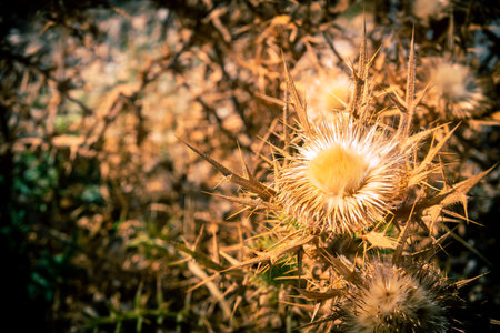 dry borriqueo thistle Onopordum acanthium isolated with green background in horizontal