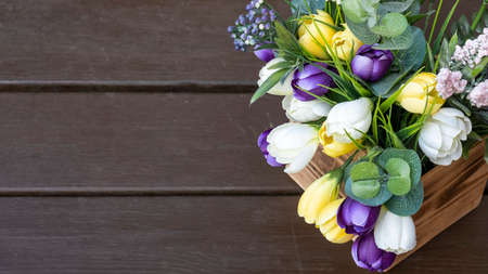 Artificial flower bouquet decoration, copy space background