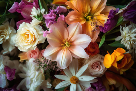 Vibrant and colorful mixed flower bouquet in a stunning still life composition for decoration