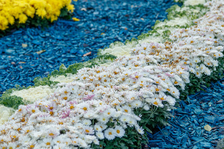 multi-colored flower beds of beautiful chrysanthemums close up