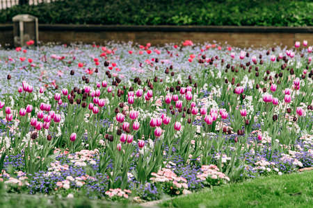 Colorful flowerbed with mixed spring flowers