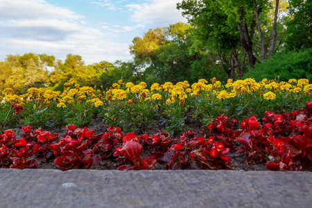 Flowerbeds for decorative landscaping of the urban environment. Background with selective focus and copy space for text or inscription