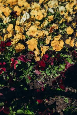 Beautiful pansy flowers in the garden. Selective focus.