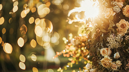 Evening garden celebration with vibrant flowers and soft lighting in a tranquil outdoor setting