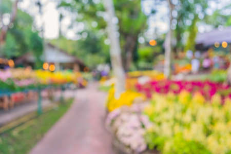 blur image of people in flower garden for backgroudn usage.