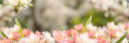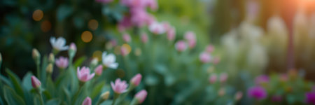 Blossoming spring flowers in a vibrant garden showcasing delicate pink and white petals under soft natural light