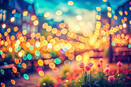 the enchanting beauty of festive bokeh backgrounds in vibrant settings Let the magical colors and shimmering lights transport viewers to a world of joyous celebration.