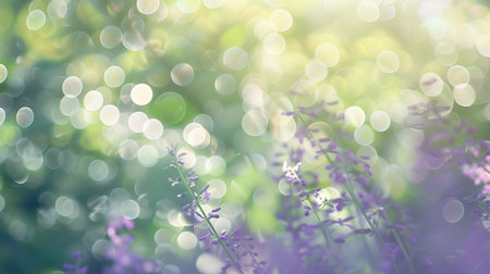 A mesmerizing banner background featuring an ethereal blend of lavender, purple, and sage green bokeh with beautifully defocused lights, perfect for a variety of creative projects.