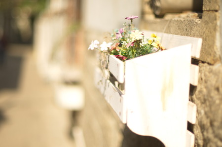 Beautiful flowers in a flowerpot on a vintage background. with vintage filter