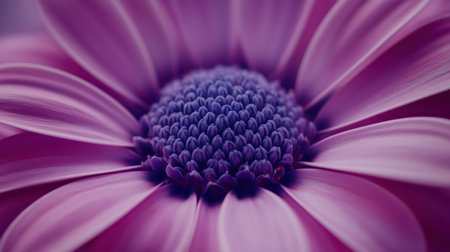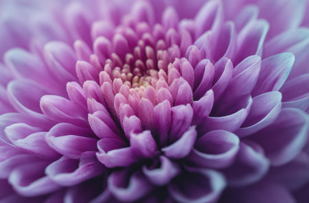 This close-up showcases a radiant purple chrysanthemum, its numerous petals forming a detailed, textured pattern. The image displays a soft focus with a gradient of colors from light edges to deeper hues. This aesthetic is suitable for various uses, including editorial content, design projects, and decorative purposes.