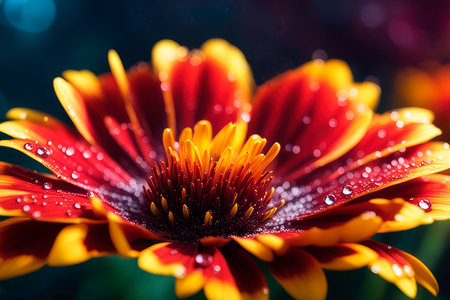 Spring flowers of gaillardia pulchella macro with drops of water on the petals. Mother's day or Valentine day concept. Flowers blooming in summertime.
