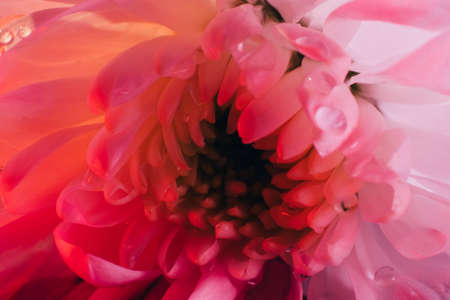 Colorful dahlia flower with water drops on petals close up