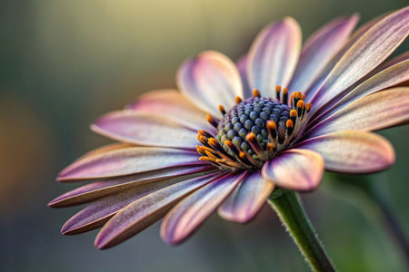 Close-up of a mauve and white Osteospermum flower with soft background lighting.