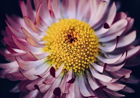 Blooming chrysanthemum or daisy flower, close-up floral petals as botanical background, macro
