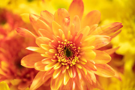 Closeup of orange and yellow Mums flower using as background natural flora, ecology cover page concept.