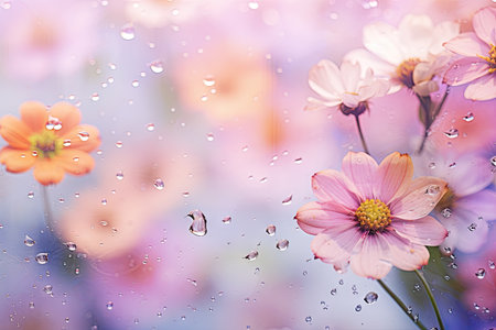 spring flowers rain drops, abstract blurred background flowers fresh rain