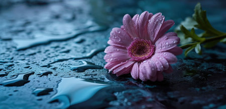 Macro shot of raindrops cascading off the vibrant petals of a gerbera daisy after a refreshing shower