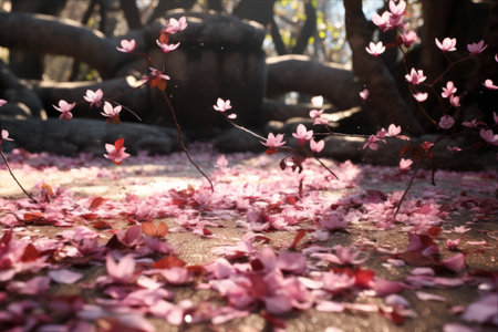 Cherry blossom petals falling on the ground in the park