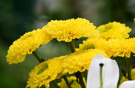 beautiful bushes of yellow chrysanthemum flowers close-up
