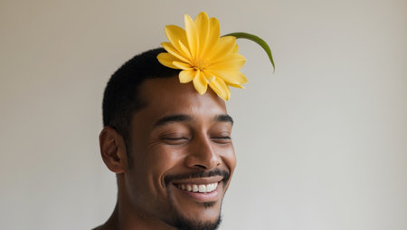 Blossoms of Diversity: The Enigmatic Man with a White and Pink Floral Accent