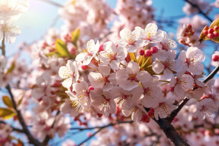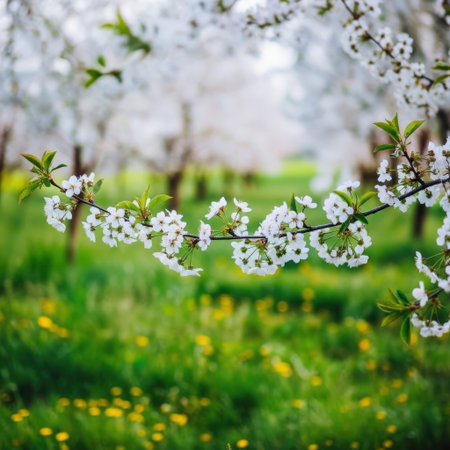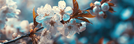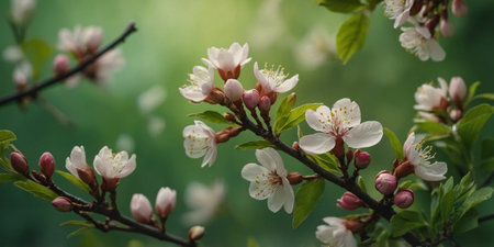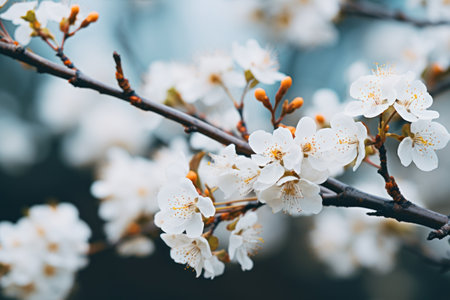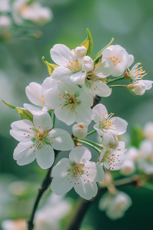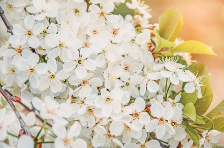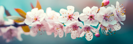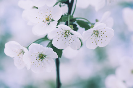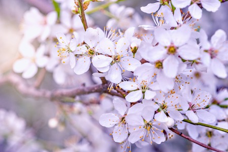 Cherry tree blossoming flowers with soft petals on natural floral background