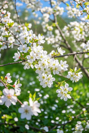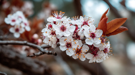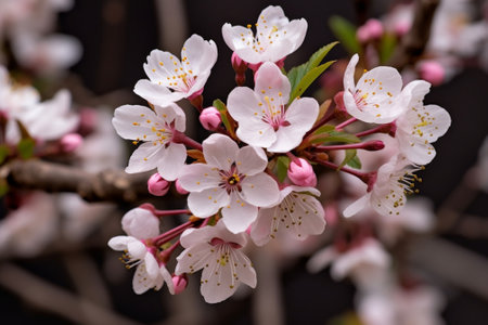 Delicate cherry blossoms display their beauty on a blooming branch.
