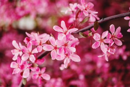 Blossoming prunus cerasifera cherry plum springtime pink flowers