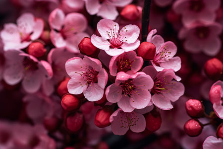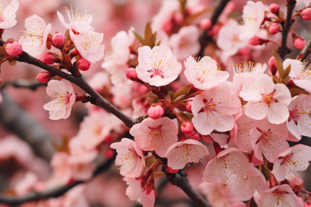 Generative AI : Detail of prunus persica tree springtime flowers blooming