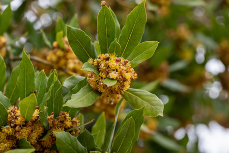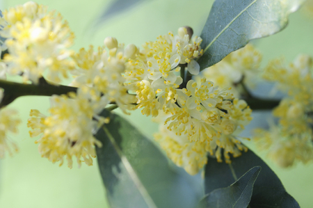 Laurus nobilis yellow inflorescence
