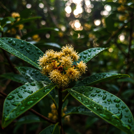 The Allspice at dawn soft golden sunlight kissing leaves clean air natural color
