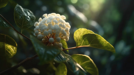 The Quinine tree at dawn soft golden sunlight kissing leaves clean air natural color