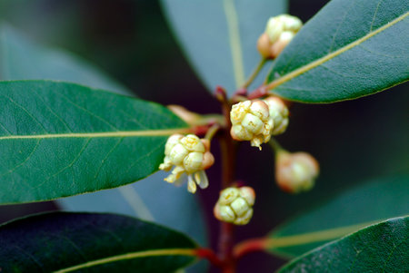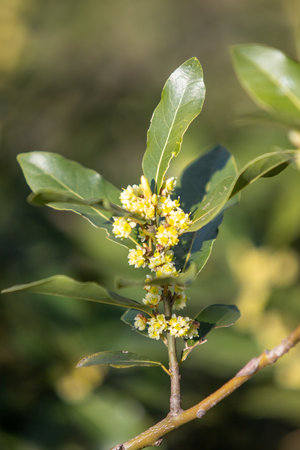 Close Up of laurel Tree Flowers on Blurred Background in Italy