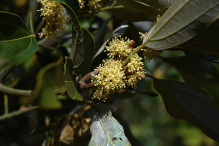 Flowers of an oil nut tree, Calophyllum inophyllum, a tropical tree used for ship building.