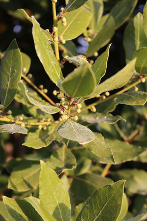 bay tree. laurel plant leaves and seeds