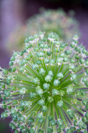 bright blooming bear onion on a blurred natural background, macro