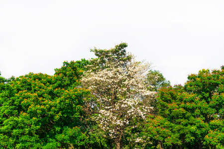 Colorful treetop with white Chinese rose in the middle with white isolated background